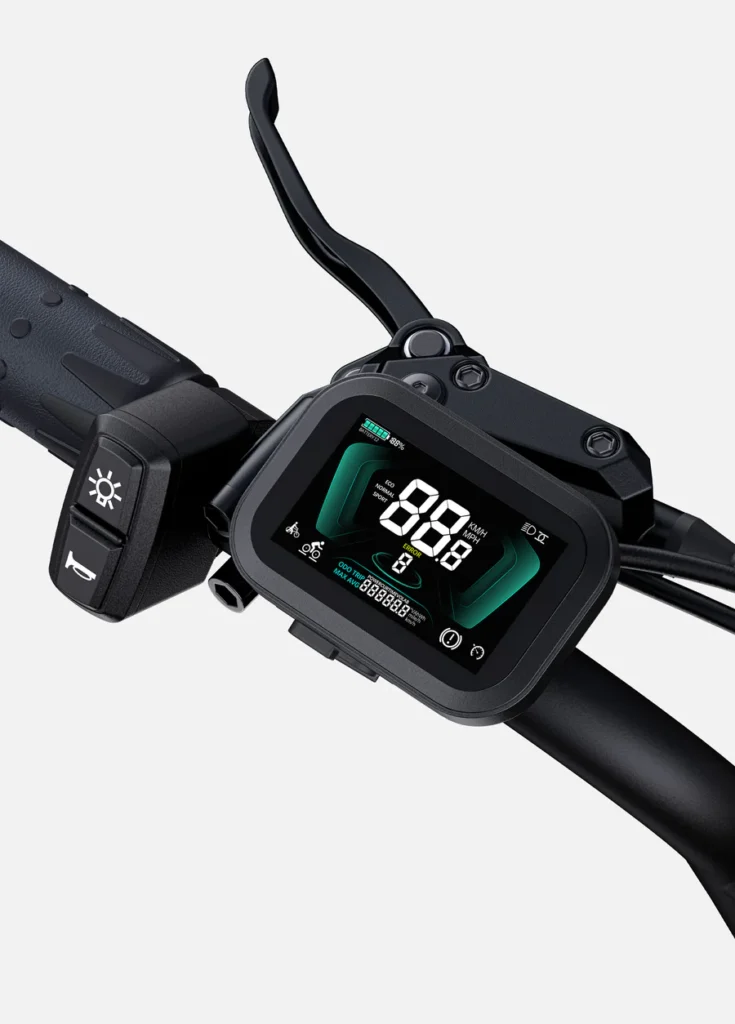 A clear, easy-to-read display shows key riding metrics such as speed, battery level, distance traveled, and pedal-assist mode. This helps riders stay informed and in control on every trip.